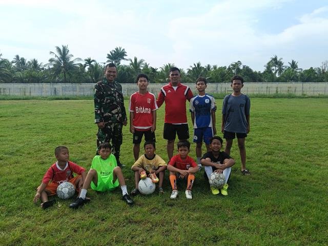 Babinsa melaksanakan kegiatan komunikasi sosial (Komsos) dengan anak-anak yang sedang melaksanakan latihan sepak bola di Stadion Sei Kepayang Kanan, Desa Sei Kepayang Kanan. Dalam kegiatan tersebut Babinsa berbaur langsung dengan para peserta latihan, memberikan arahan serta motivasi agar terus giat berlatih dan menjunjung tinggi nilai sportivitas. Selain itu Babinsa juga mengingatkan pentingnya menjaga kesehatan serta menjauhi pengaruh negatif di lingkungan sekitar. Babinsa menyampaikan bahwa olahraga merupakan salah satu kegiatan positif yang dapat membentuk karakter disiplin, kerja sama, dan semangat juang bagi generasi muda. Kegiatan berlangsung dengan penuh keakraban dan suasana yang hangat.