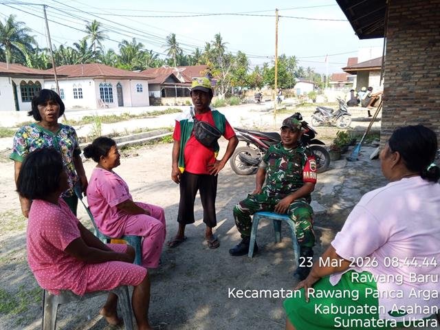 Asahan | Dalam rangka untuk menjalin komunikasi yang baik antara Babinsa dan semua lapisan masyarakat yang ada diwilayah binaan, dalam kesempatan tersebut seperti yang dilakukan oleh Personel Bintara Pembina Desa (Babinsa) Koramil 18/Meranti jajaran Kodim 0208/Asahan Serda Adong Rajagugguk turun kewilayah binaan untuk melaksanakan kegiatan Komunikasi Sosial (Komsos) sekaligus Anjangsana bersama dengan warga binaan guna membahas tentang keamanan dan kebersihan lingkungan, kegiatan Komsos dengan warga Desa Binaan, kegiatan Komsos bertujuan untuk bersilaturahmi dengan warga agar Babinsa mengenal lebih dekat dengan warga binaan sekaligus menanyak kan situasi ke amanan selama di hari Raya Idul Fitri sehingga tercipta hubungan yang humanis antara Babinsa dan seluruh warga dan Babinsa senantiasa menghimbau agar tetap menjaga kerukunan antar umat beragama dalam pelaksanaan hari raya idul Fitri dan toleransi kepada seluruh lapisan masyarakat, bersama dengan Bapak Rustom (Kadus Dusun 1), Ibu Riana (warga) dan Ibu Mira (warga), kegiatan tersebut yang dilaksanakan bertempat di Desa Rawang Baru Kecamatan Rawang Baru Panca Arga Kabupaten Asahan, Senin (23/03/2026).