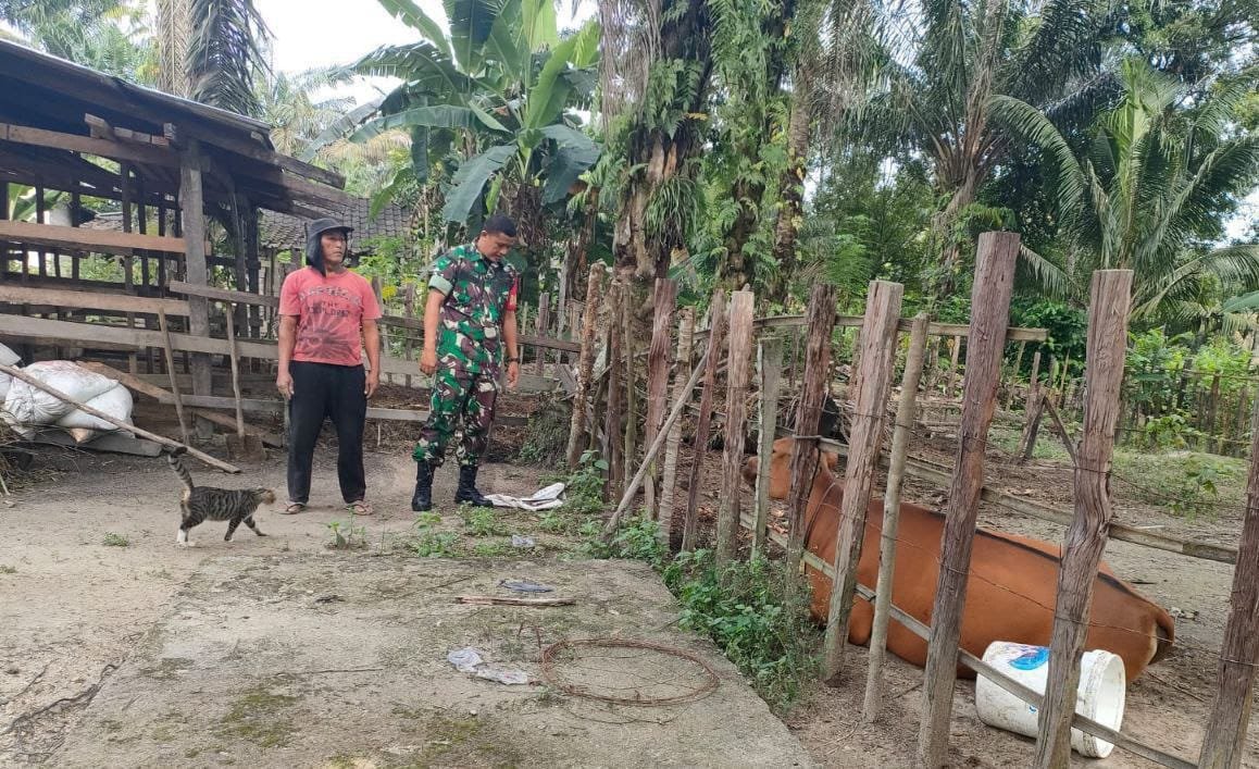Seperti yang dilakukan oleh Babinsa Koramil 02/Kuantan Tengah Serda Marizal,As melaksanakan pendampingan kepada salah satu Peternak Sapi di Desa Marsawah Kec. Sentajo Raya Kab. Kuansing, Senin (05/01/2026).