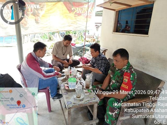 Asahan | Dengan terjalinnya silaturahmi yang baik akan meningkatkan hubungan kerja yang baik antara Babinsa dengan komponen masyarakat yang ada di wilayahnya dan akan meningkatkan kepercayaan masyarakat kepada Babinsa, dalam kesempatan ini seperti yang dilakukan oleh Personel Bintara Pembina Desa (Babinsa) Koramil 13/Buntu Pane jajaran Kodim 0208/Asahan Sertu Bedi Saputra turun kewilayah binaan untuk turut serta melaksanakan kegiatan Komunikasi Sosial bersama dengan warga binaan masyarakat, dengan harapan Babinsa agar tetap terjalin komunikasi yang baik sebagai silahturahmi kekeluargaan dan menambah semangat dalam bekerja dengan masyarakat membicarakan tentang perkembangan situasi sekarang, kegiatan Komsos dengan Warga Desa Binaan bertujuan meningkatkan komunikasi yang baik antara Babinsa dan Warga sehingga dapat mempererat hubungan tali silaturahmi dan menciptakan kebersamaan dengan Warga Desa serta untuk mendapatkan informasi yang diperlukan, Bersama dengan Bapak Rusmanto, Bapak Gunawan dan Bapak Ardiansyah Sirait, kegiatan tersebut yang dilaksanakan bertempat di Dusun III Desa Teladan Kecamatan Tinggi Raja Kabupaten Asahan, Minggu (29/03/2026).