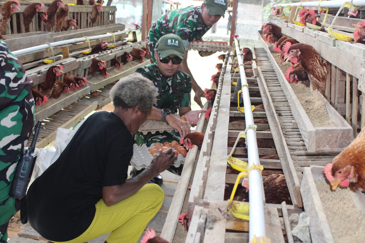 Dalam kegiatan tersebut, lima Orang Asli Papua (OAP) yakni Ibu Rut Sobar, Ibu Mince Masari, Ibu Elisabet Apersey, Ibu Ateng Daap, dan Ibu Dina Targualam dilibatkan langsung dalam proses pemanenan telur perdana ini. Selain itu, Danyonif TP 814/JZA memberikan masing-masing satu tray telur ayam secara gratis kepada masyarakat yang turut hadir dalam kegiatan tsb sebagai bentuk kepedulian terhadap kebutuhan gizi masyarakat.