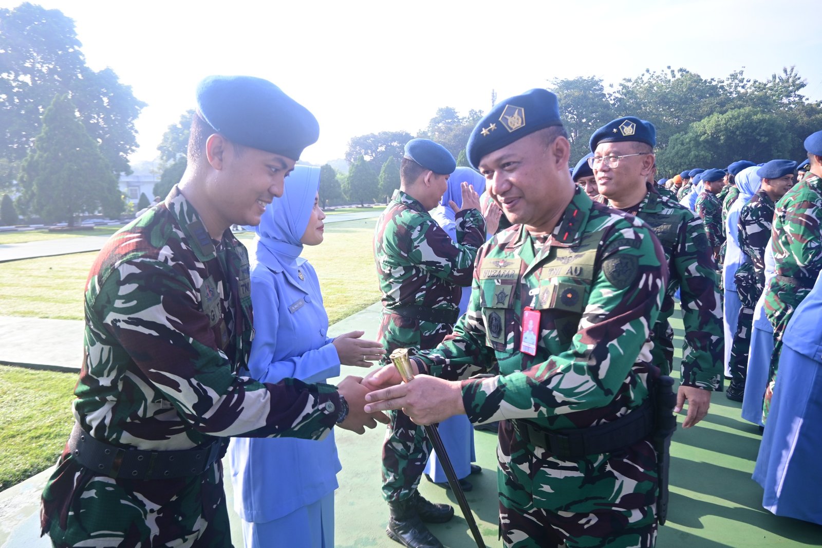 Setelah upacara, suasana baru dan haru, bangga dan bersyukur mewarnai halaman Makodau I dalam prosesi penerimaan kenaikan pangkat setingkat lebih tinggi, dimana istri/suami menyematkan pangkat baru yang dilakukan langsung oleh para istri kepada suami mereka.