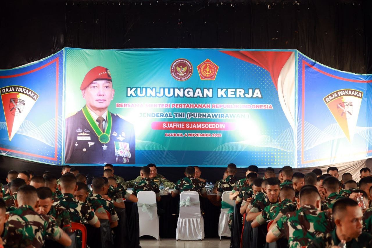 Sulteng – Panglima TNI Jenderal TNI Agus Subiyanto mendampingi Menteri Pertahanan RI Sjafrie Sjamsoeddin dalam kunjungan kerja ke Batalyon Infanteri Teritorial Pembangunan (Yonif TP) 823/Raja Wakaaka di Kota Baubau, Sulawesi Tenggara, Selasa (4/11/2025). Kunjungan tersebut bertujuan untuk meninjau progres pembangunan pangkalan baru sekaligus memberikan pengarahan langsung kepada para prajurit di satuan tersebut.
