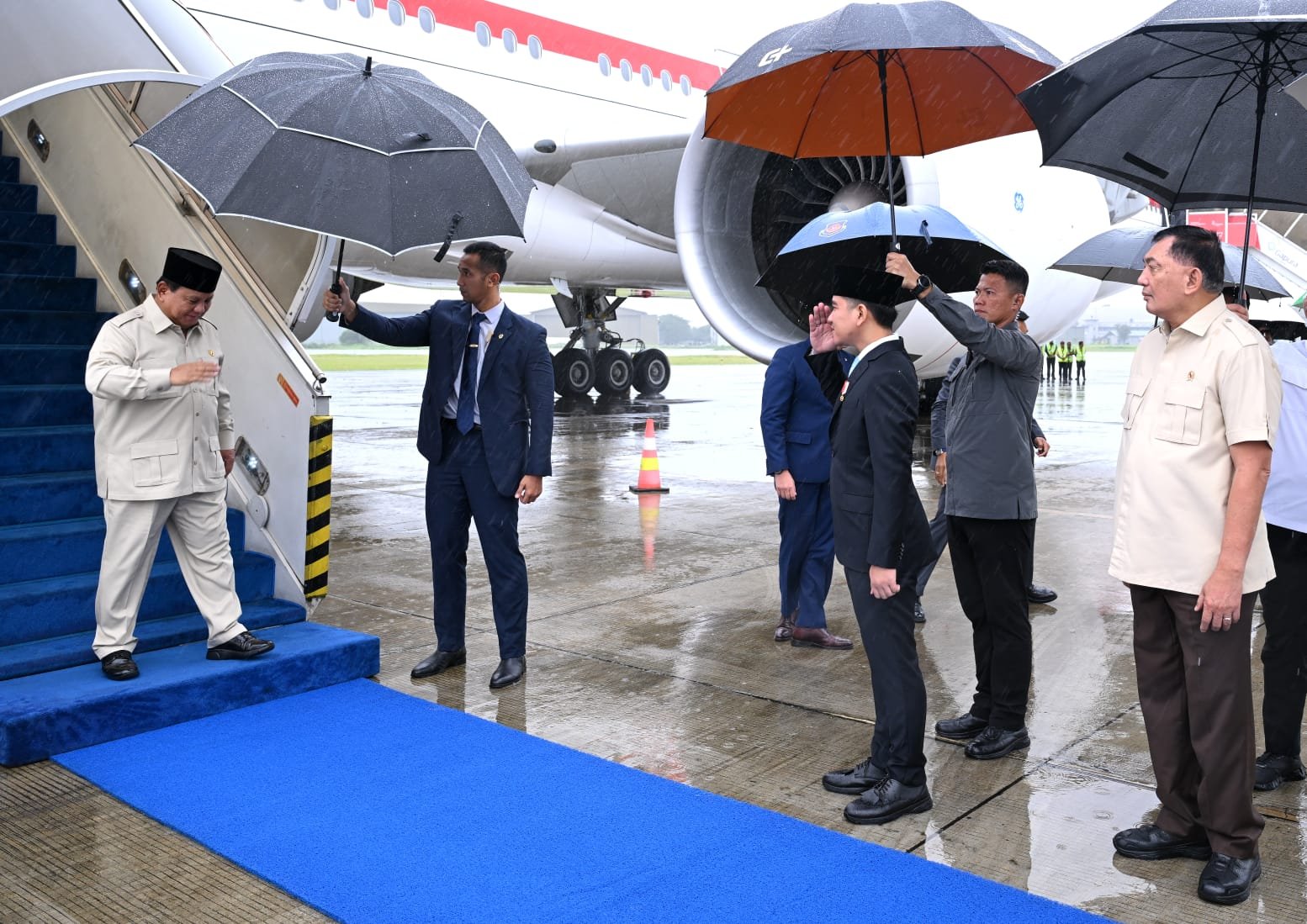 Jakarta – Panglima TNI Jenderal TNI Agus Subiyanto menyambut kedatangan Presiden Republik Indonesia Prabowo Subianto usai menuntaskan rangkaian lawatan luar negeri, di Pangkalan TNI AU Halim Perdanakusuma, Jakarta Timur, Jum’at (27/02/2026). Kedatangan turut disambut juga, Wakil Presiden Gibran Rakabuming, Menhan RI Sjafrie Sjamsueddin, Mensesneg Prasetyo Hadi, dan Kapolri Jenderal Pol. Listyo Sigit Prabowo.