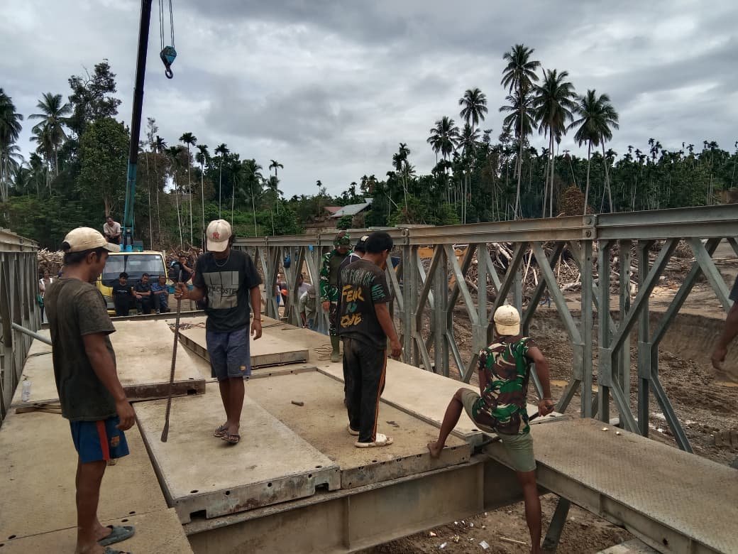 Sementara itu, pembangunan Jembatan Bailey Kutablang pada ruas jalan yang sama terus dikebut. Jembatan dengan bentang sekitar 66 meter ini dikerjakan oleh personel gabungan Zidam Iskandar Muda dan Yonzipur 16/Dhika Anoraga, dengan progres mencapai 60% setelah pemasangan lantai jembatan serta wings penarik.