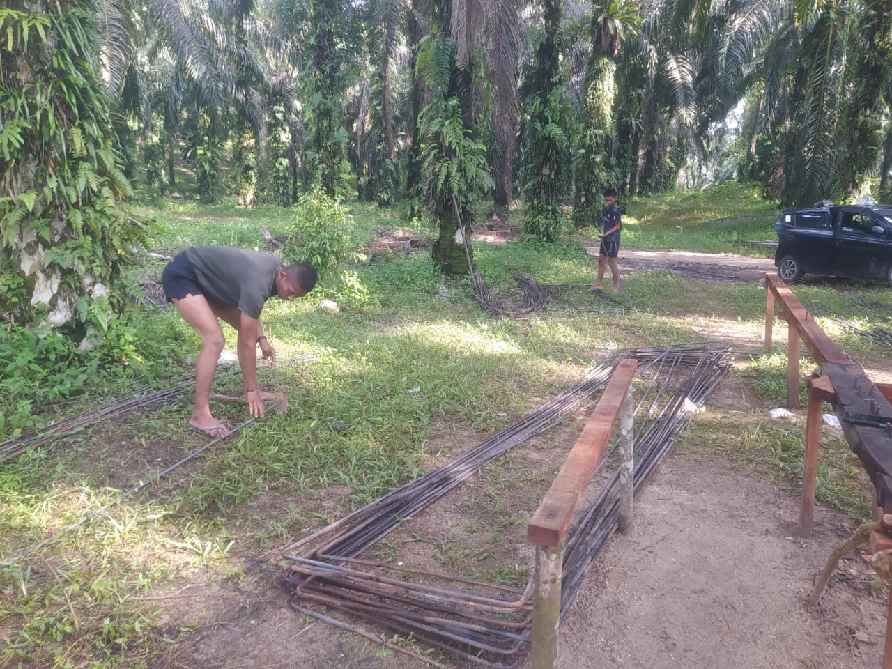 Pekerjaan Pembangunan jembatan Perintis Garuda tampak sudah melakukan Merangkai Besi Tapak Gajah pembangunan jembatan gantung garuda di Dusun III hari ini. Senin (27/04/2026) Desa Sukaraja Kecamatan Logas Tanah Darat Kabupaten Kuantan Singingi.