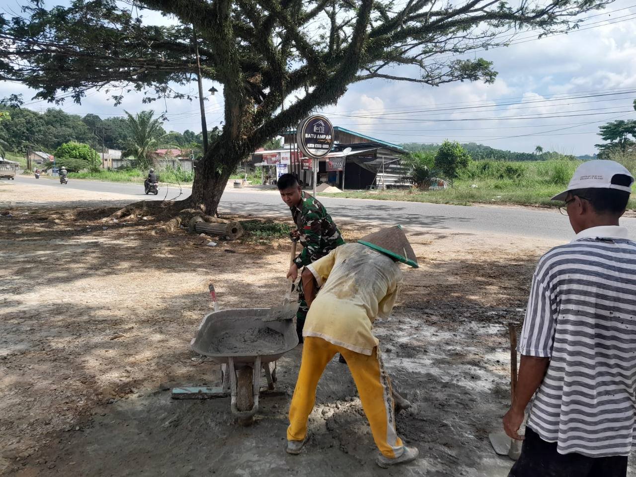 Teluk Kuantan – Babinsa Koramil 02/Kuantan Tengah Kodim 0302/Inhu Pratu Teguh Muhammad Yamin melaksanakan kegiatan membantu masyarakat Pengecoran pondasi rumah milik Bapak Ade di Desa Simandolak Kec. Benai Kab. Kuansing, Senin (29/12/2025).