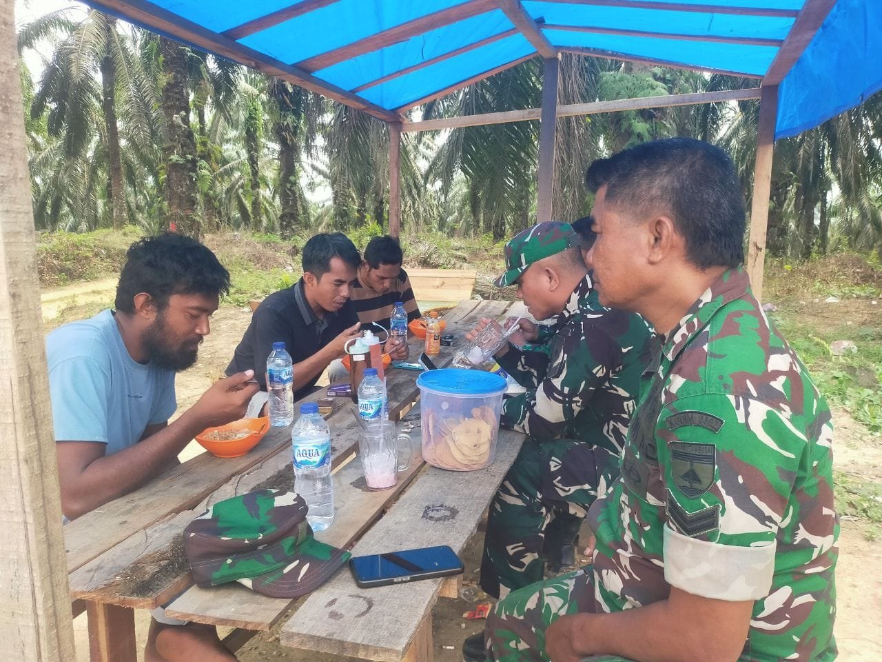 Babinsa Koramil 08/KM Kodim 0302/Inhu Sertu Hendro dan rekan Babinsa lainnya melaksanakan kegiatan Komunikasi bersama warga binaan Di Desa Lubuk ramo Kecamatan kuantan mudik kabupaten kuantan singingi. Senin ( 02/02/2026).