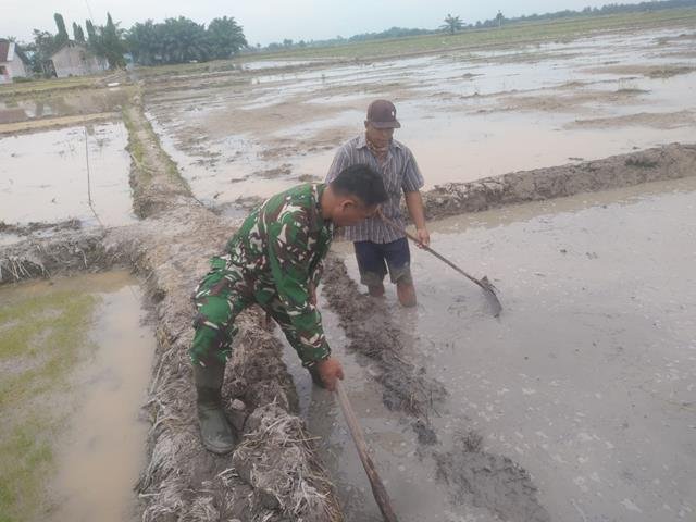 Batu Bara | Terjun langsung kesawah bersama petani dalam rangka penyiapan lahan pertanian untuk penyemaian bibit padi, persemaian merupakan hal penting dalam dalam pertanian, termasuk budidaya tanaman padi, beberapa faktor yang mempengaruhi pertumbuhan tanaman terletak pada persemaian yang di persiapkan yaitu penyiapan lahan semai, jenis tanaman serta varietas tanaman yang tentu harus unggul dan bagus untuk di tanam dan juga dalam segi perawatan, dalam kesempatan ini kali ini seperti yang dilakukan oleh Personel Bintara Pembina Desa (Babinsa) Koramil 02/Air Putih jajaran Kodim 0208/Asahan Serda Indra turun kewilayah binaan untuk melaksanakan kegiatan pendampingan Hanpangan, dengan melaksanakan kegiatan Hanpangan membantu Petani membuat tempat semai padi dilahan sawah milik Bapak Anto Sirait, kegiatan tersebut yang dilaksanakan bertempat di Desa Suka Ramai Kecamatan Air Putih Kabupaten Batu Bara, Selaa (31/03/2026).