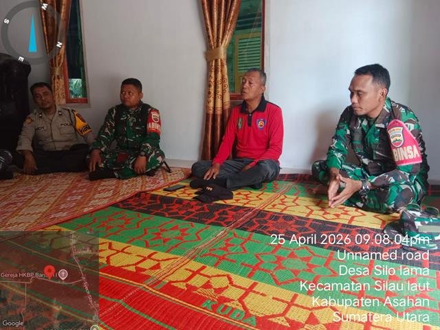Selain sebagai ajang silaturahmi, kegiatan ini juga dimanfaatkan untuk berdiskusi dan bertukar pikiran terkait berbagai hal yang perlu dibenahi di tengah masyarakat, termasuk mendengarkan aspirasi maupun keluhan warga guna dicarikan solusi bersama, dalam kesempatan ini Personel Bintara Pembina Desa (Babinsa) Koramil 07/Air Joman jajaran Kodim 0208/Asahan Sertu Ali Imron turun kewilayah binaan untuk melaksanakan kegiatan Pendampingan Bapak Camat Silau laut dalam rangka Komunikasi sosial Silaturahmi dikediaman Bapak Marpaung selaku Pendeta, bersama dengan Bapak Utomo (Camat Silau Laut), Babinpotmar, Babinkamtibmas, Kadus 7, Toga dan Tomas, kegiatan tersebut yang dilaksanakan bertempat di Dusun 7 Silo Lama Barisan 2 Desa Silo Lama Kecamatan Silau Laut Kabupaten Asahan, Sabtu (25/04/2026).