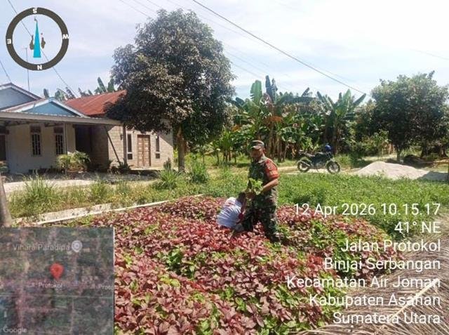 Kegiatan berlangsung dengan penuh kebersamaan dan semangat gotong royong, diharapkan melalui pendampingan ini para petani semakin termotivasi untuk mengembangkan usaha pertanian sayur mayur sehingga dapat menunjang kebutuhan ekonomi keluarga dan masyarakat sekitar, dalam kesempatan ini seperti yang dilakukan oleh Personel Bintara Pembina Desa (Babinsa) Koramil 07/Air Joman jajaran Kodim 0208/Asahan Sertu A Barus turun kewilayah binaan untuk turut serta melaksanakan kegiatan pendampingan pertanian di Kebun Sayur Bapak Tugirin, Babinsa laksanakan pendampingan pertanian di Kebun Bayam milik Bapak Tugirin sebagai bentuk dukungan terhadap sektor pertanian masyarakat, Babinsa melaksanakan kegiatan pendampingan di kebun sayur milik Bapak Tugirin dengan membantu proses penyiraman tanaman bayam serta pemupukan sayuran di wilayah binaan, kegiatan tersebut yang dilaksanakan bertempat di Lingkungan Vll Binjai Serbangan Kecamatan Air Joman Kabupaten Asahan, Minggu (12/04/2026).