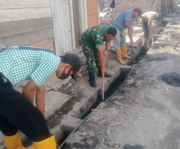 Dalam kegiatan ini Babinsa selalu menghimbau dan mengajak masyarakat untuk peduli terhadap kebersihan lingkungan juga sekaligus mempererat hubungan yang harmonis antara Babinsa dengan masyarakat. Dengan melaksanakan Gotong royong bersama warga binaan dan perangkat kelurahan di seputaran parit jalan yang tumpat akibat sampah2 yang berada di dalam parit2 gorong2 jalan seputaran jalan desa binaan, membersihkan dan menggali saluran drainase di sepanjang jalan menuju kantor desa, kegiatan ini bertujuan untuk mencegah genangan air serta menjaga kebersihan lingkungan, terutama menjelang musim hujan, dengan melaksanakan kegiatan pembersihan parit/got dari rumput liar yang tumbuh di dalam aliran parit, adapun kegiatan bertujuan untuk membersihkan rumput liar yang tumbuh di dalam parit agar tidak menghambat aliran parit yang dapat menyebabkan tersumbatnya aliran air dan dapat mengalir dengan lancar sehingga tidak menyebabkan banjir.