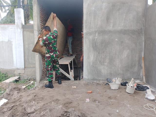 Kegiatan Komsos dengan kepala tukang untuk merenovasi dapur rumah seorang warga, kegiatan membantu masyarakat membangun rumah salah satu warga desa binaan, kegiatan bertujuan untuk menjalin hubungan tali silaturahmi yang baik dan harmonis antara Babinsa dengan warga Desa binaan serta untuk menumbuhkan rasa kebersamaan yg akrab dengan para warga desa binaan agar dapat mendukung tugas Babinsa terlaksana dengan baik di wilayah binaan. Kegiatan gotong royong Membangun Rumah Warga kegiatan tersebut dilaksanakan untuk membina hubungan antar warga, dengan membantu Membuat rumah warga binaan, kegiatan gotong royong membantu warga yang sedang membangun rumah. Kegiatan tersebut dilaksanakan dengan tujuan menjalin kerjasama dan kebersamaan antar Babinsa dengan warga sehingga dapat menunjang tugas tugas TNI kedepan dalam penerapan 8 wajib TNI.