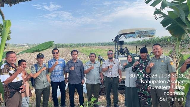 Babinsa Desa Pertahanan Sertu Budi Napitupulu mendampingi Tim dari Dinas Kabupaten Asahan, PPL Desa Pertahanan dan Desa Perbangunan serta beberapa Poktan gabungan dua Desa melaksanakan Pengolahan Tanah seluas 240 Ha dalam rangka Tanam Serempak 50 ribu Hektare diLahan Oplah dan CSR Program Kementerian Pertanian Tahun 2026 di Dusun IV Desa Pertahanan Kecamatan Sei Kepayang, dalam kegiatan tersebut turut serta dihadiri oleh, UPTD BPP Pertanian WIL – III Kabupaten Asahan Ibu Wiwin Wulansari Spi, Katimker Kementan RI Bapak Lordarwin Purba SP, Koordinator BPP Sei Kepayang Bapak Dian Parta Wijaya SP, Plt Kades Pertahanan Bapak Rudalf, Babinsa Desa Pertahanan Sertu Budi Napitupulu, Maneger Brihade Pangan Mandiri Bapak Hamdan Tambunan, Ketua Poktan Harapan Tani Bapak Azhari Sitorus, PPL Bapak Joni Dalimunte SP, PPL Bapak Syafrizal Hasibuan SP, PPL Bapak Muhammad Rasyid, Petani Bapak Buyamin Damanik, Petani Ibu Nurhayati, Petani ibu Nurhayanum dan Mahasiswa Polbangtan Medan.
