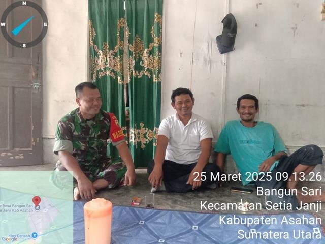 Asahan | Keakraban kepada warga binaan merupakan tugas pokok Babinsa. Salah satunya yaitu dengan melakukan komunikasi sosial dalam menciptakan interaksi serta kekompakan antara Babinsa dan warga binaannya. Seperti halnya yang dilakukan oleh Personel Bintara Pembina Desa (Babinsa) Koramil 13/Buntu Pane jajaran Kodim 0208/Asahan Sertu Putra Kurnia turun kewilayah binaan untuk melaksanakan kegiatan Komsos dengan Masyarakat binaan bertujuan untuk meningkatkan komunikasi yang baik sehingga dapat mempererat hubungan tali silaturahmi untuk menciptakan kebersamaan, serta menghimbau kepada warga agar selalu melaporkan kejadian yang ada di desa serta perkembangan situasi kepada Babinsa, Babinsa juga sekaligus mendekatkan diri kepada warga desa binaan agar selalu terjalin hubungan yang harmonis, bersama dengan Bapak Juarna (Kadus III) dan Bapak Anto (Warga Binaan), kegiatan tersebut yang dilkaksanakan bertempat di Dusun III Desa Bangun Sari Kecamatan Setia Janji Kabupaten Asahan, Rabu (25/03/2026).