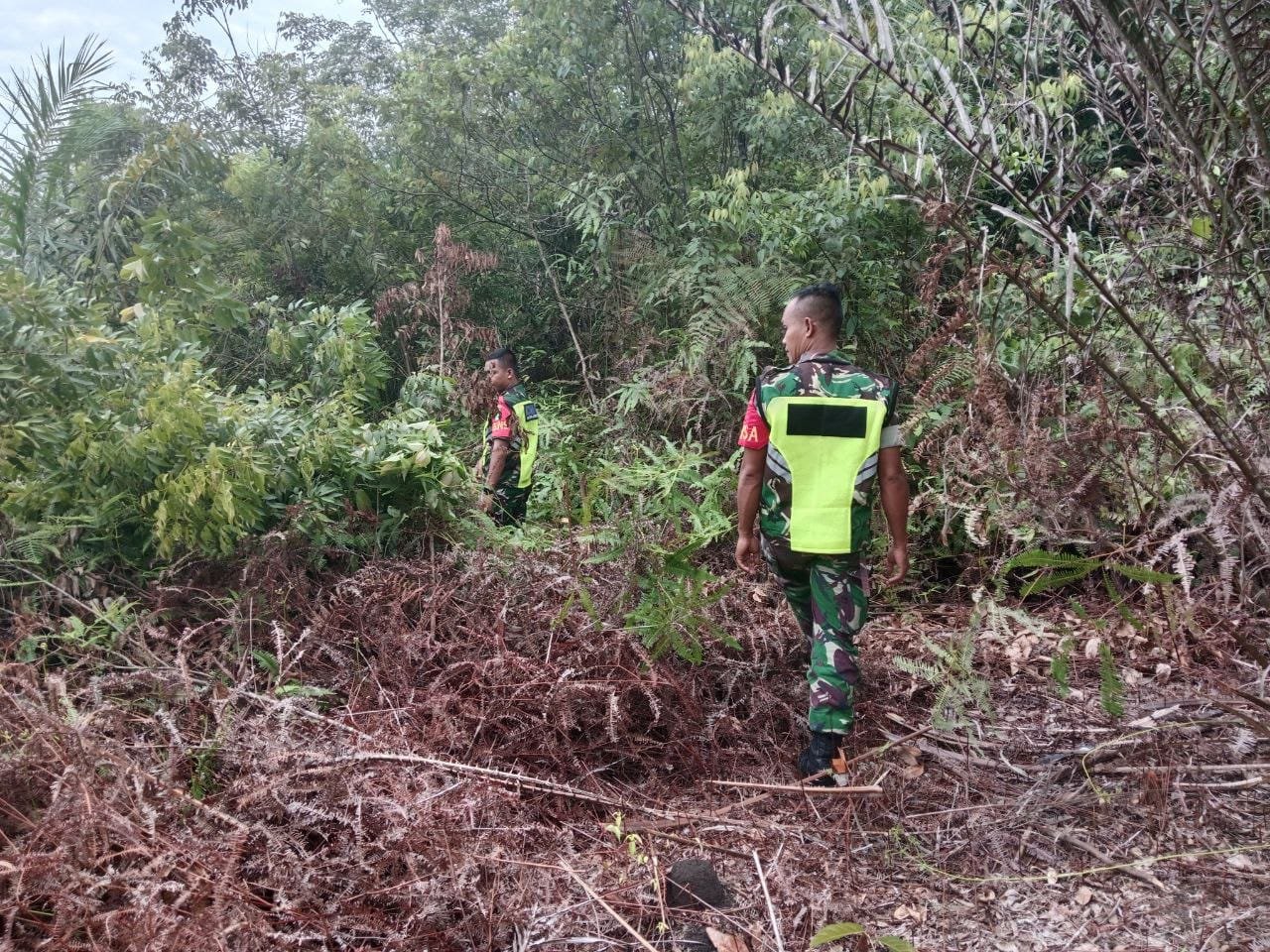 Hal ini seperti yang dilakukan Babinsa Koramil 02/KT dengan dipimpin oleh Sertu Robiyanto bersama dengan beberapa anggota kembali menyasar kawasan perkebunan warga dan semak belukar yang ada di Desa Beringin Taluk Kec. Kuantan Tengah Kab. Kuansing. Kamis (25/12/2025).