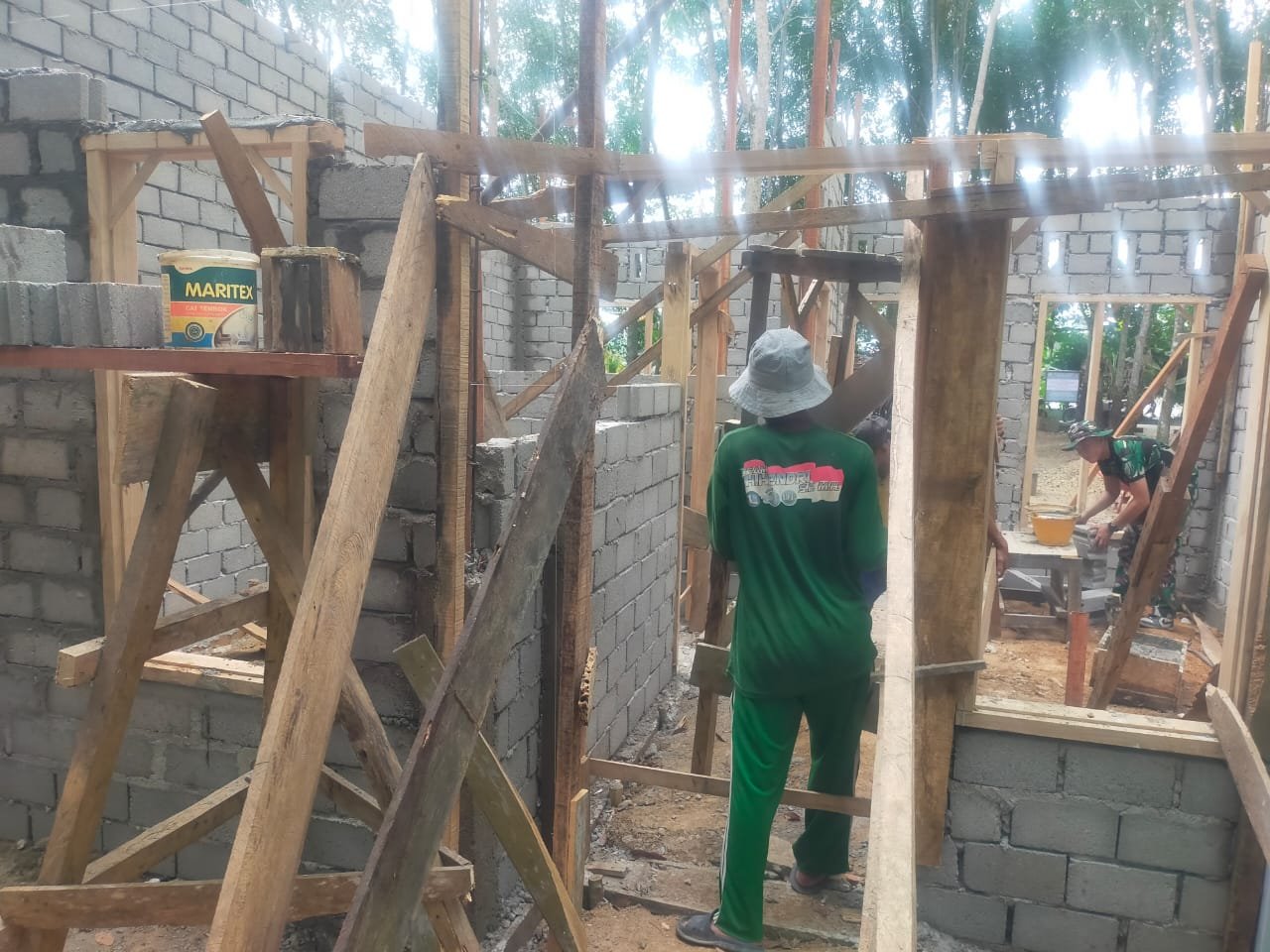 Salah satu bukti nyata yang dikerjakan Satgas TMMD bersama masyarakat adalah pembangunan RTLH Saat ini prajurit TNI dibantu masyarakat sedang melakukan pemasangan Batako dinding, jika sudah kering akan dilanjutkan dengan pemasangan atap serta kaca kusen jendela maupun pintu.