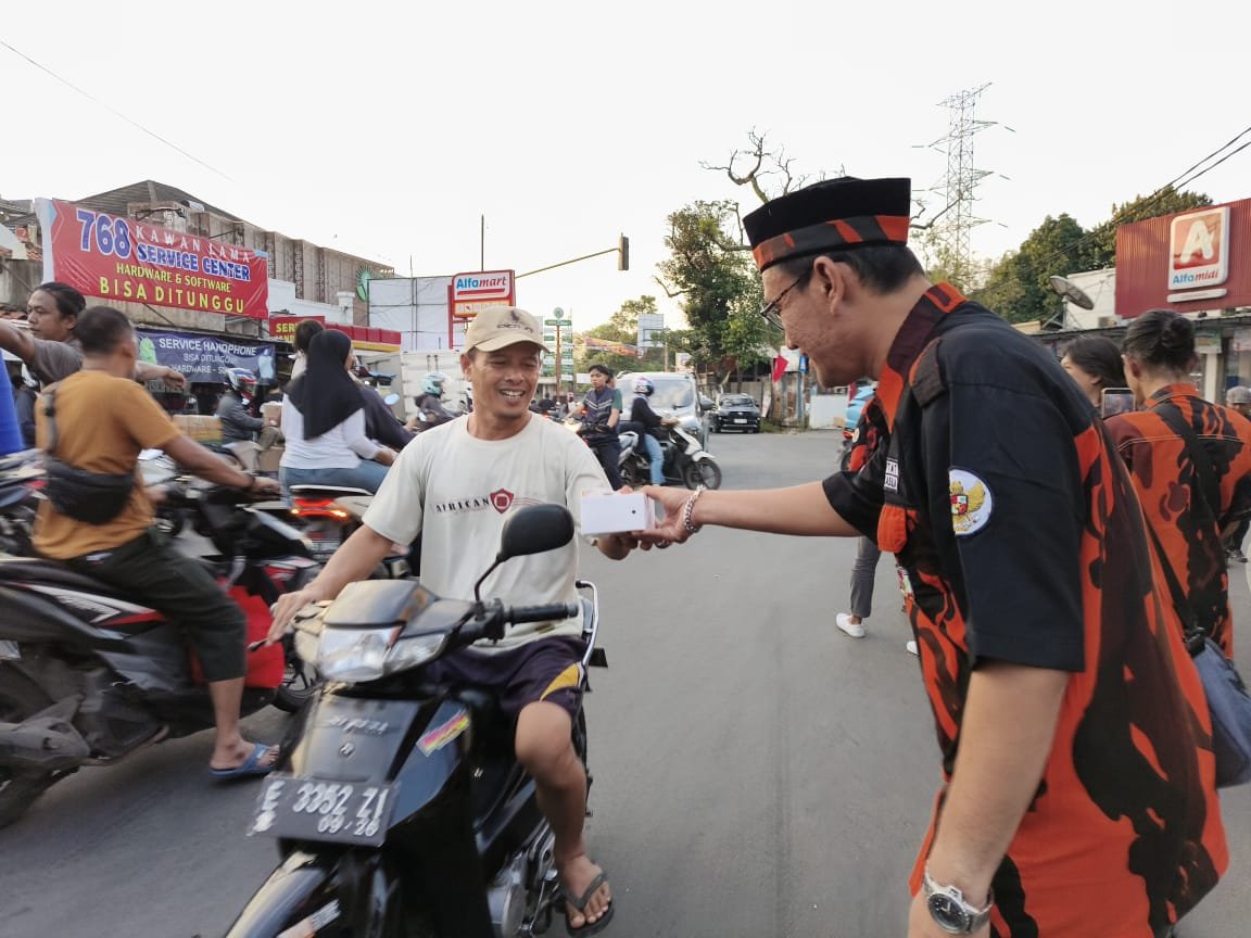 Sejak pukul 17.00 WIB, puluhan anggota PP berseragam loreng oranye tampak antusias membagikan paket takjil kepada para pengendara roda dua, roda empat, maupun pejalan kaki yang melintas. Meskipun cuaca cukup terik, semangat persaudaraan dan berbagi tak menyurutkan langkah para pengurus PAC dan Ranting.
