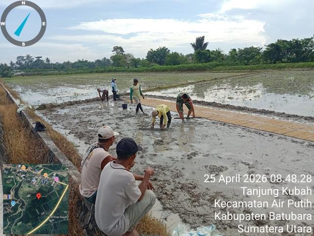Dalam rangka bercocok tanam padi, benih padi yang bagus dan unggul akan lebih tahan terhadap hama dan penyakit, selain itu pertumbuhannya juga bagus, waktu panen yang lebih singkat serta hasil panen yang optimal, dalam kesempatan ini Personel Bintara Pembina Desa (Babinsa) Koramil 02/Air Putih jajaran Kodim 0208/Asahan Kopda Septiadi Wijatnarko turun kewilayah binaan untuk melaksanakan kegiatan ketahanan Pangan membantu warga binaan dalam rangka untuk melaksanakan pembibitan padi untuk ditanam di sawah, kegiatan hanpangan membantu petani menyemai padi di Sawah milik Bapak Malik, sebagai bentuk pendampingan ketahanan pangan, meliputi perendaman benih, penyiapan lahan semai, hingga perawatan bibit. Kegiatan ini memastikan benih berkualitas, siap tanam dalam 25 hari, dan sering menggunakan teknik jajar untuk hasil optimal, bersama dengan Bapak Malik (Pemilik Sawah), Bapak Umar (Poktan), Bapak Hamdan (Poktan) dan Ibu Sumiati (Poktan), kegiatan tersebut yang dilaksanakan bertempat di Desa Tanjung Kubah Kecamatan Air Putih Kabupaten Batu Bara, Sabtu (25/04/2026).