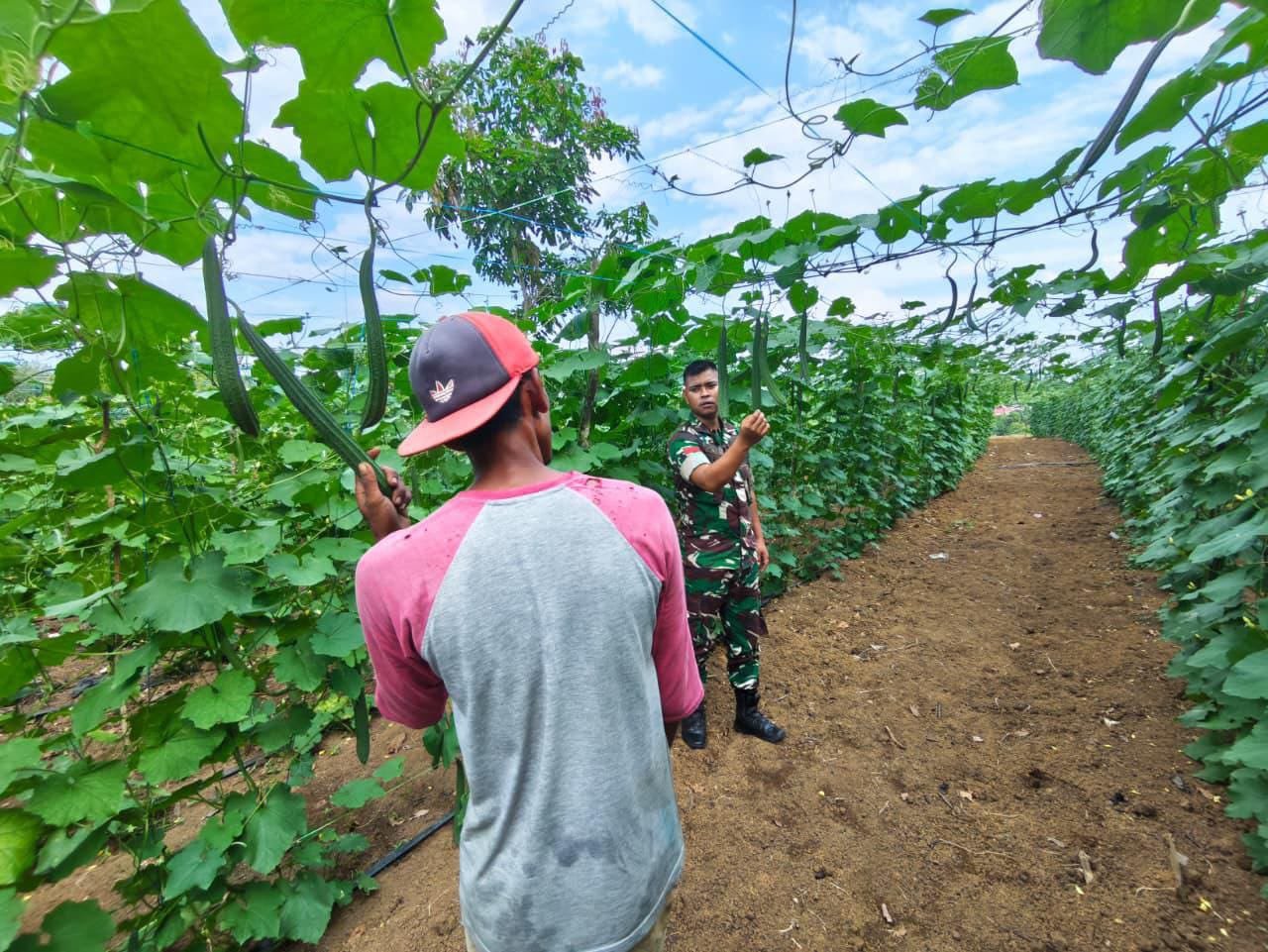 Sukseskan Ketahanan Pangan Babinsa Bantu Petani Rawat Kebun Sayur