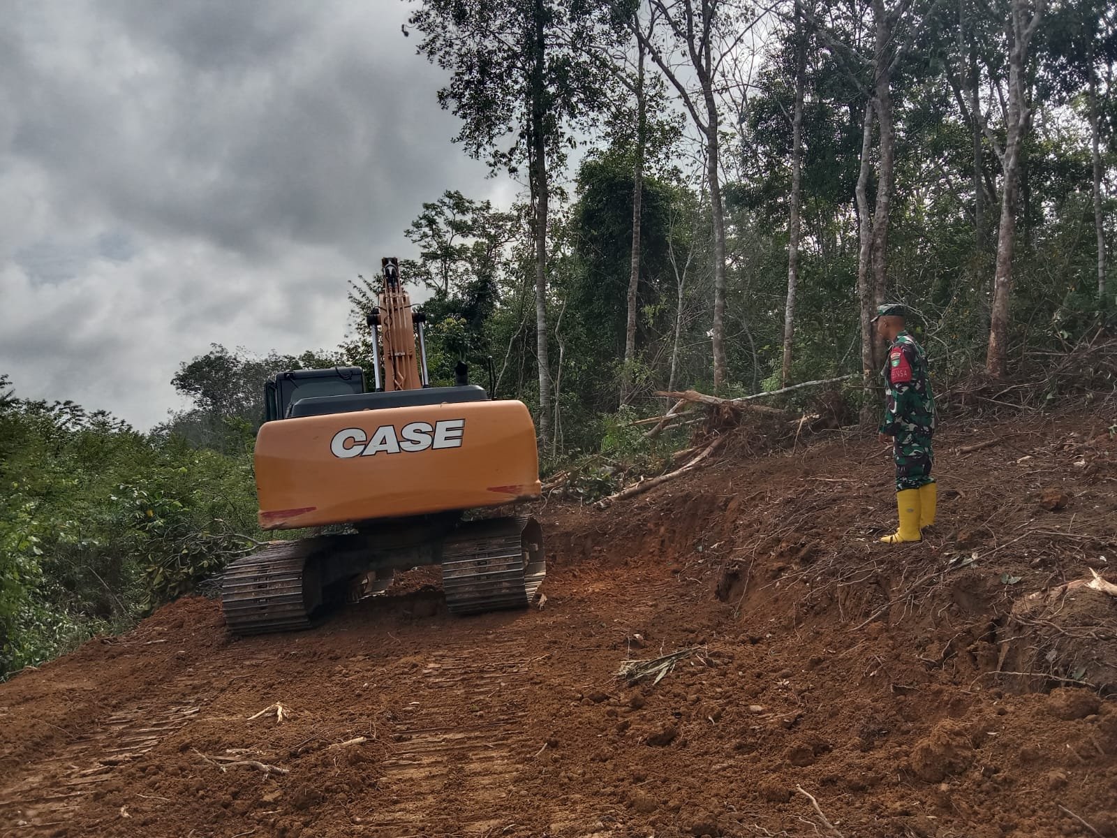 Kegiatan TMMD dilanjutkan dengan pembukaan jalan sepanjang 4,2 kilometer yang menghubungkan Desa Rawang Ogung menuju Desa Teratak Jering, Kecamatan Kuantan Hilir Seberang, Kabupaten Kuantan Singingi. Sabtu (21/02/2026)