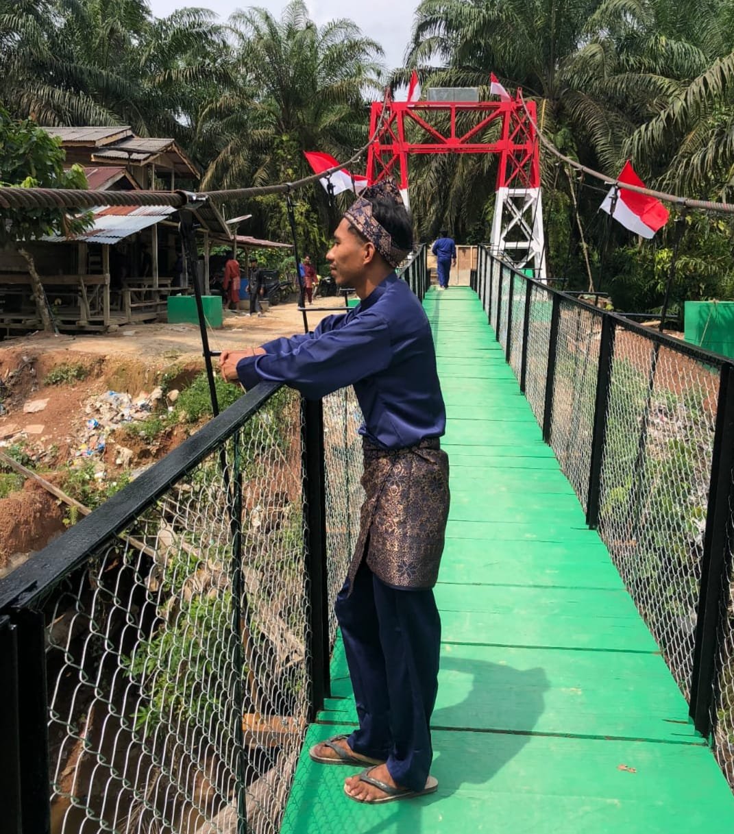 Senyum bahagia masyarakat desa rantau langsat, menjadi bukti nyata manfaat besar dari hadirnya jembatan tersebut.