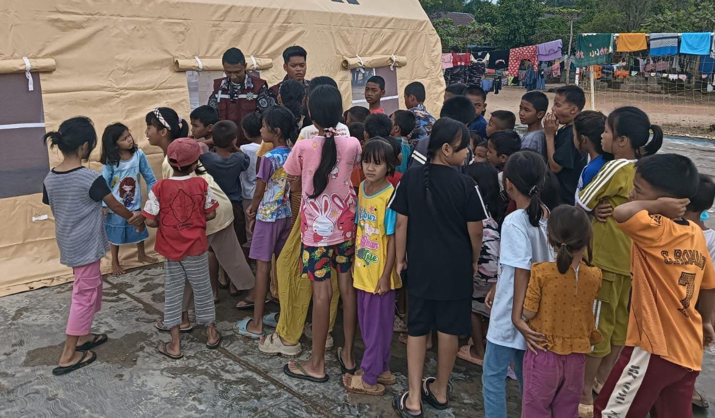 Pada kesempatan tersebut, Tim Dukpsi Trauma Healing Dispsial mendatangi lokasi pengungsian masyarakat terdampak bencana alam yang berada di SMA Negeri 1 Tukka, Kabupaten Tapanuli Tengah. Di lokasi pengungsian, tim memberikan pendampingan psikologis serta pemeriksaan kesehatan guna membantu para penyintas, khususnya anak-anak dan kelompok rentan, agar mampu bangkit dan beradaptasi pascabencana.