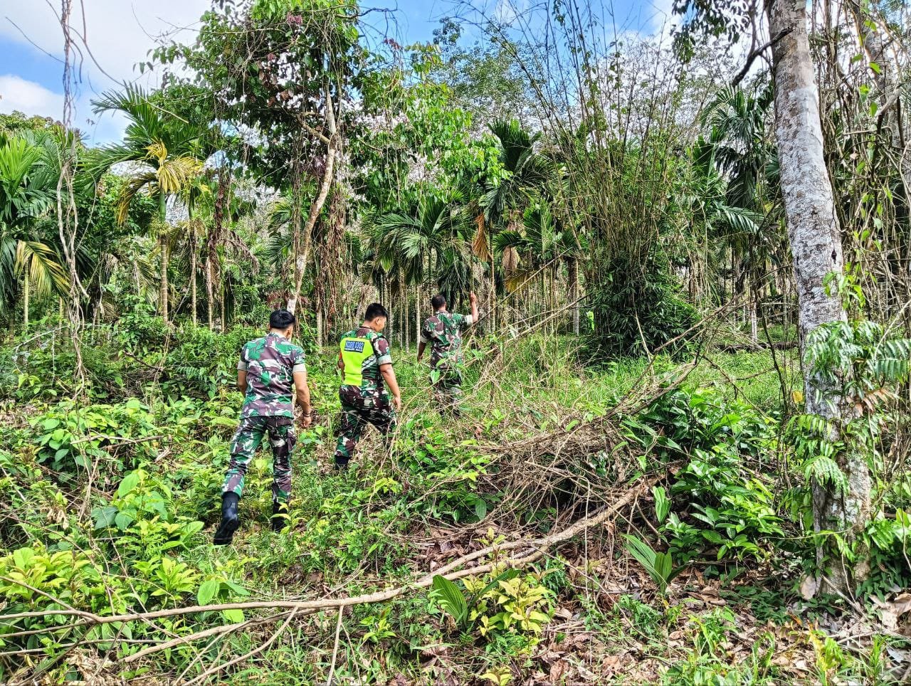Teluk Kuantan – Bintara Pembina Desa (Babinsa) Koramil 02/Kuantan Tengah Serda Sunariadi bersama Anggota Lainnya melaksanakan Patroli Kebakaran Hutan dan Lahan (Karhutla) di desa Beringin Taluk Kec. Kuantan Tengah Kab. Kuansing, Rabu (31/12/2025).