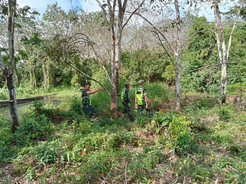 Teluk Kuantan – Bintara Pembina Desa (Babinsa) Koramil 02/Kuantan Tengah Koptu Indra Eka Putra bersama Anggota Lainnya melaksanakan Patroli Kebakaran Hutan dan Lahan (Karhutla) bersama warga di desa Beringin Taluk Kec. Kuantan Tengah Kab. Kuansing, Sabtu (08/11/2025).