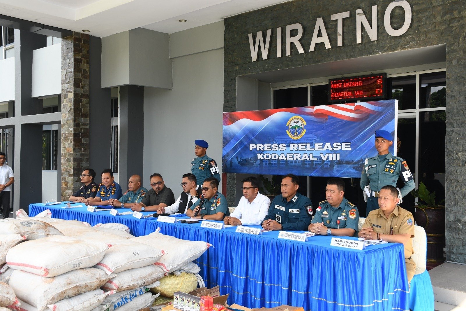 Dalam kesempatan tersebut Wadan Kodaeral VIII menyampaikan Penindakan tersebut dilakukan pada Minggu, 8 Februari 2026, oleh Tim QR-8 Kodaeral VIII, Satgas Gabungan dan Bea Cukai Kanwil Sulawesi Utara, berdasarkan informasi intelijen terkait rencana penyelundupan barang ilegal menggunakan truk ekspedisi.