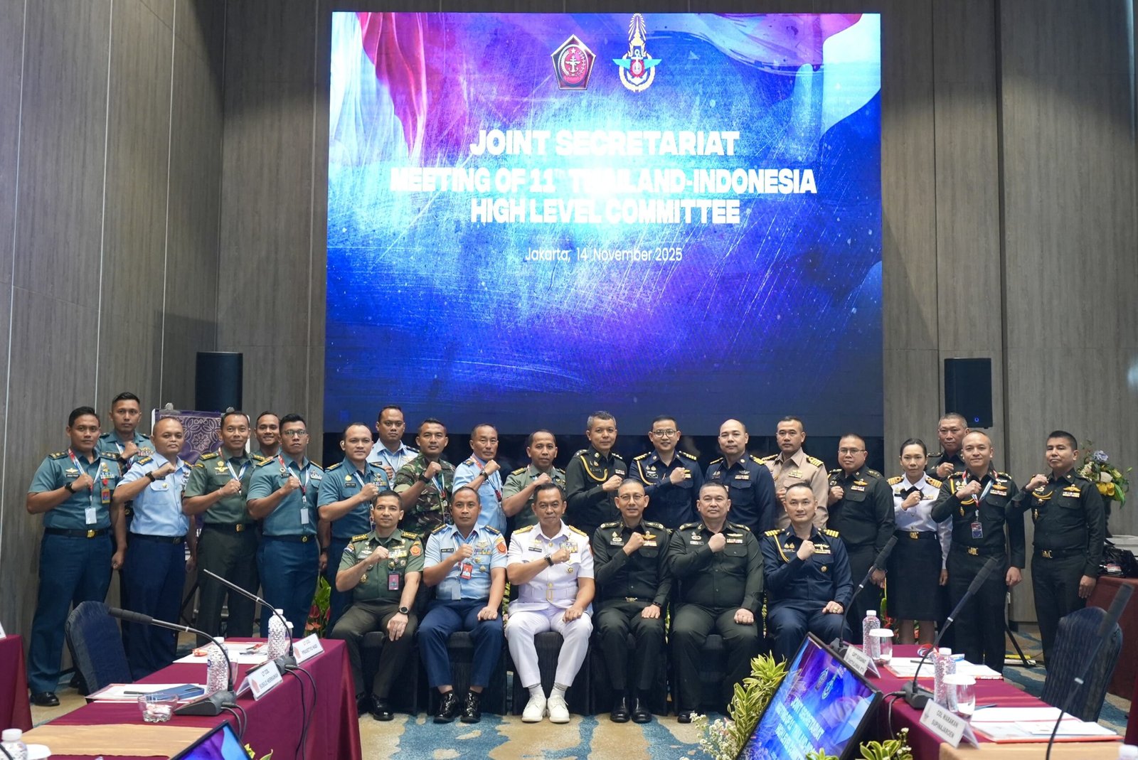 Jakarta – Joint Secretariat Meeting (JSM) ke-11 High Level Committee Thailand-Indonesia (HLC THAINESIA) dibuka oleh Laksma TNI Donny Suharto, Kepala Pusat Kerjasama Internasional (Kapuskersin) TNI bersama Lt. Gen. Chumpot Nurakatte, Director of Department of Border Affair Royal Thai Armed Forces (RTARF). Pertemuan ini menjadi langkah penting dalam memperkuat diplomasi pertahanan dan kerja sama strategis antara Indonesia dan Thailand. Acara bertempat di Grand Mercure Hotel, Kemayoran, Jakarta, Jumat (14 /11/2025).