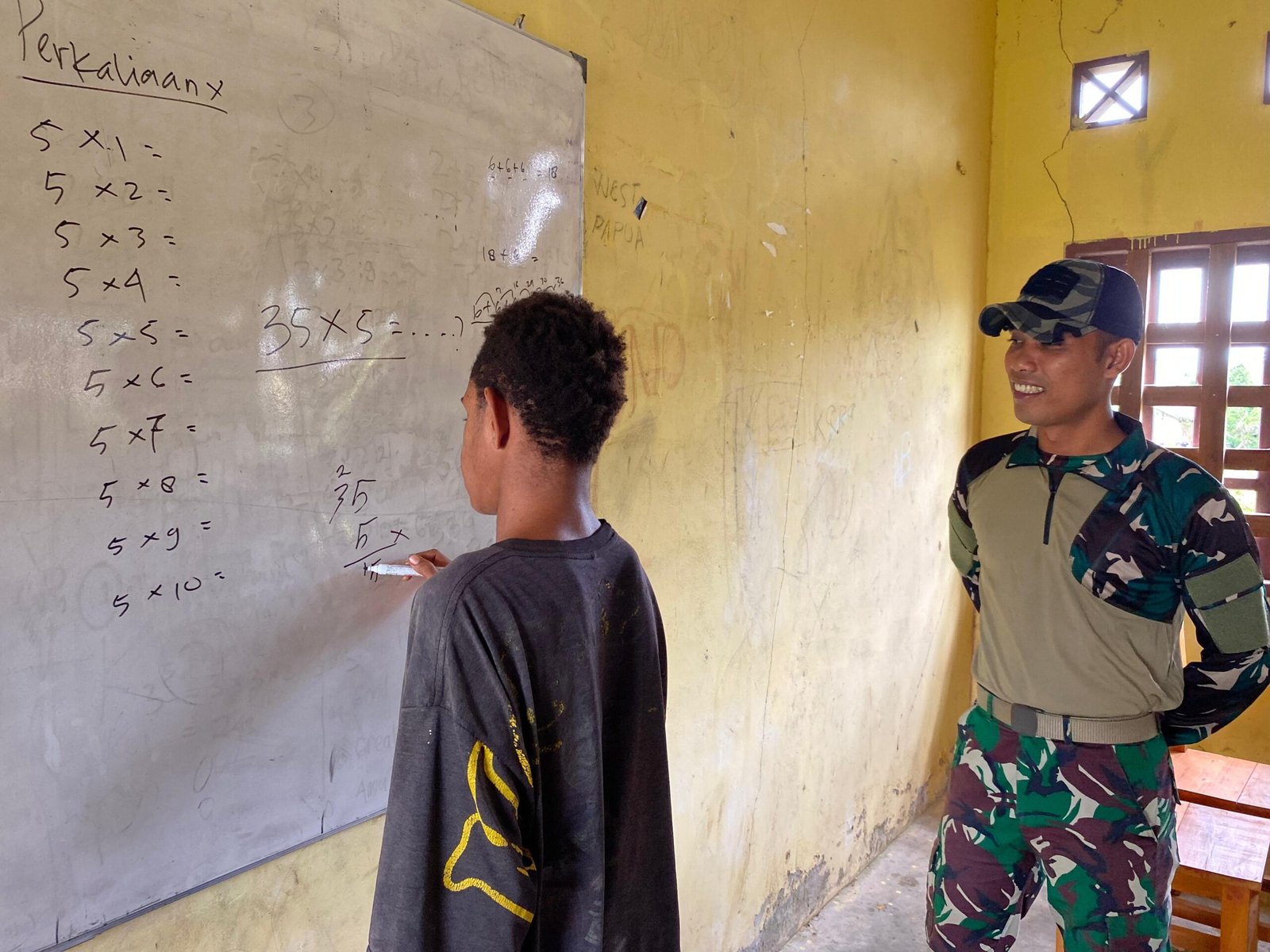 Boven Digoel – Peduli terhadap masa depan generasi muda di wilayah perbatasan, prajurit TNI dari Satgas Yonif 126/KC (Kalacakti) menyambangi SMP Krounjendit, Distrik Mindiptana, Kabupaten Boven Digoel, Papua Selatan, untuk menanamkan wawasan kebangsaan sekaligus membantu siswa meningkatkan kemampuan berhitung. Kegiatan ini menjadi wujud kontribusi TNI dalam mencerdaskan anak bangsa.
