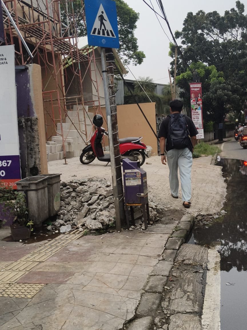 BisnisMetro,TANGERANG SELATAN- Fasilitas publik di wilayah Rawamekarjaya, Tangerang Selatan, tepatnya di seberang sebuah sekolah swasta elit, kini menjadi sorotan. Sebuah bangunan mewah dua lantai kedapatan melakukan pengecoran beton pada jalur pedestrian yang berujung pada kerusakan drainase dan estetika jalan.
