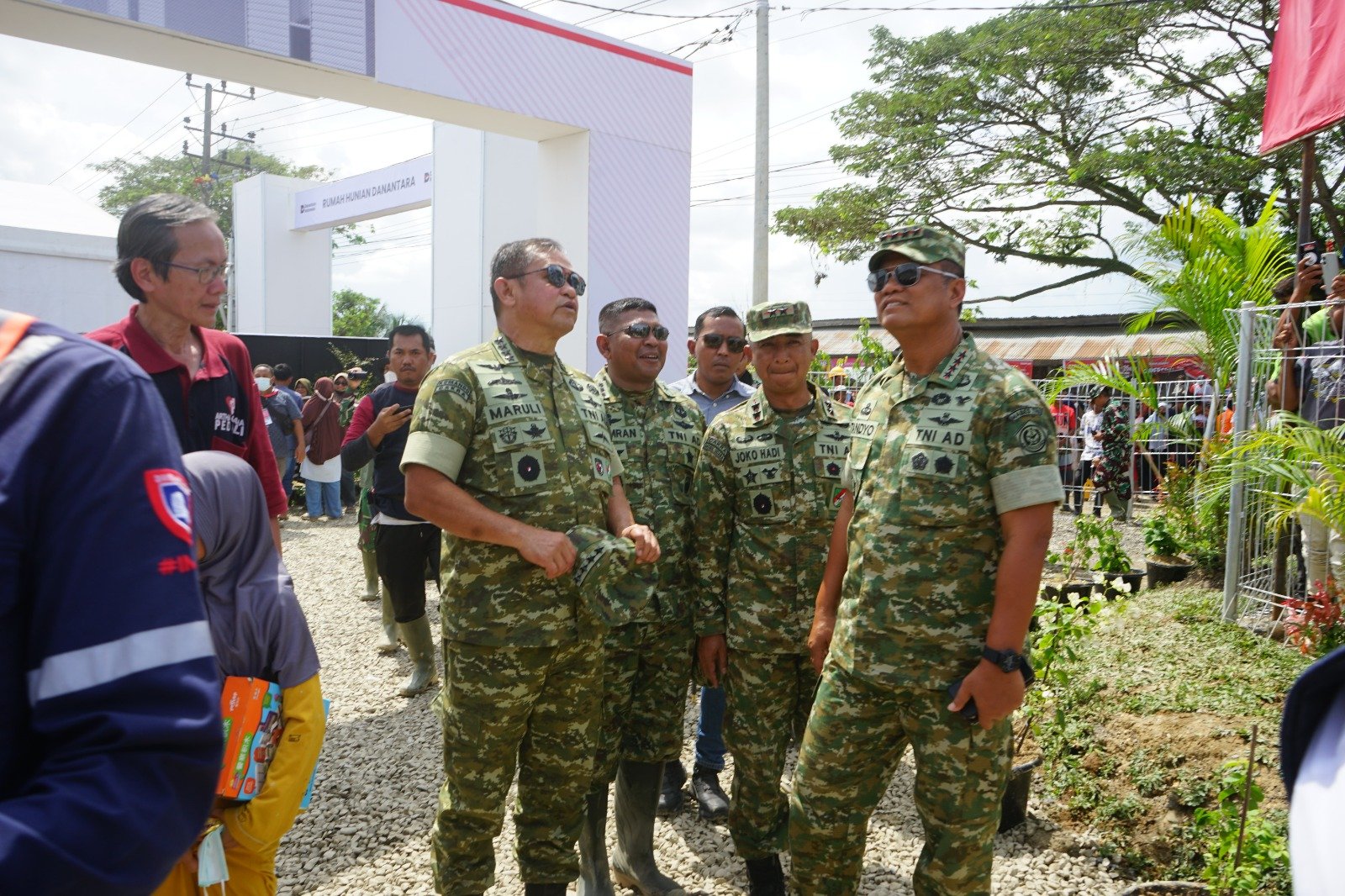 Aceh – Wakil Panglima TNI Jenderal TNI Tandyo Budi R mendampingi Presiden Republik Indonesia Prabowo Subianto bersama Menhan RI Sjafrie Sjamsoeddin dan Kepala Staf TNI Angkatan Darat Jenderal TNI Maruli Simanjuntak meninjau lokasi pembangunan rumah hunian Danantara di Kabupaten Aceh Tamiang, Provinsi Aceh, Kamis (1/1/2026). Kunjungan ini merupakan bagian dari komitmen pemerintah dalam memastikan percepatan penyediaan hunian layak bagi masyarakat terdampak bencana.