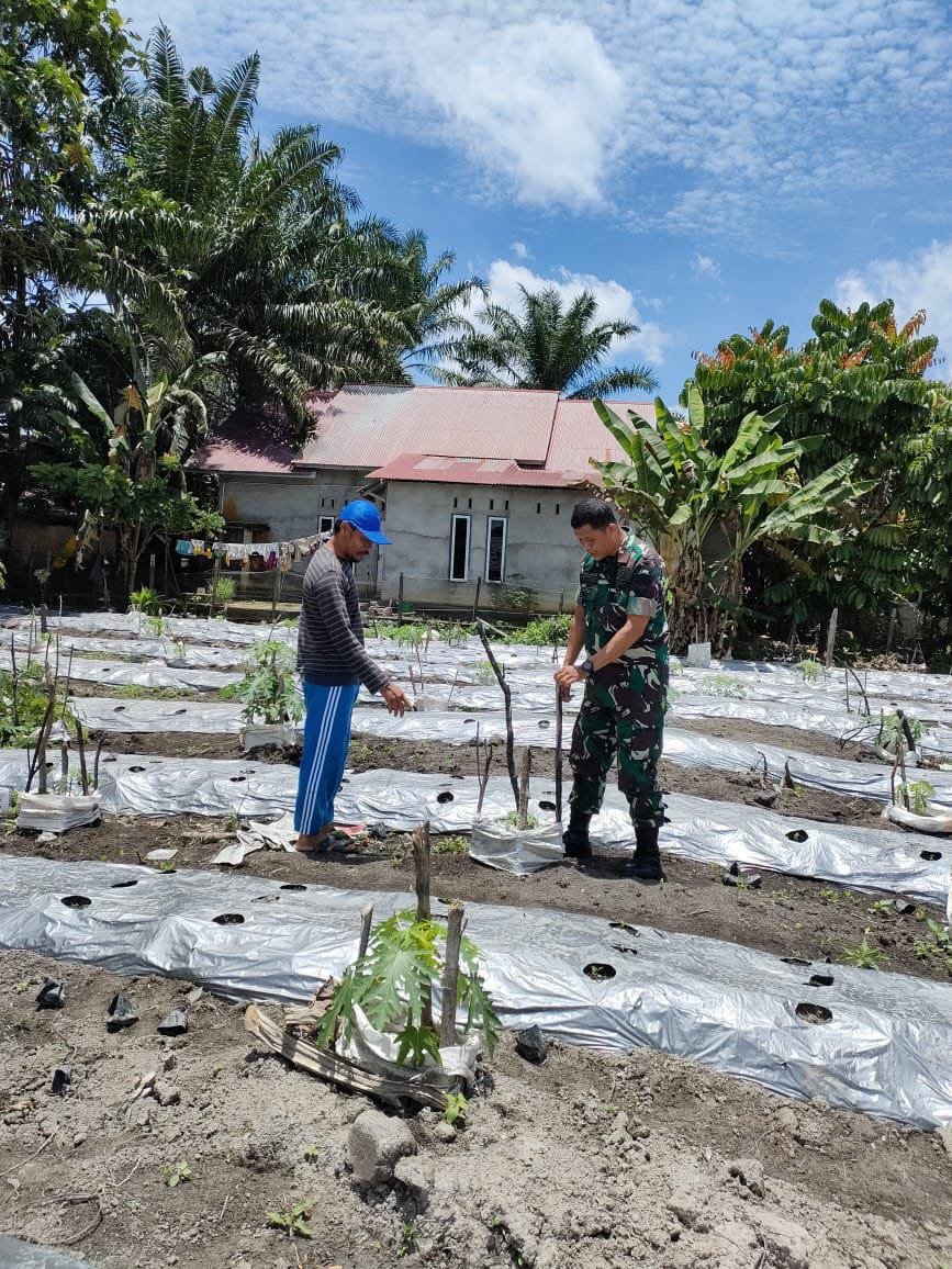 Dalam kesempatan tersebut terlihat Babinsa bersama warga binaan melakukan perawatan terhadap pokok tanaman pepaya, Disela kegiatanya Serda Marizal, As mengatakan, Pendampingan Babinsa terhadap warga masyarakat petani merupakan salah satu tugas pokok aparat teritorial di wilayah dalam pembinaan ketahanan pangan.